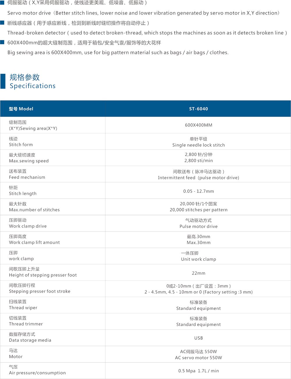 伺服驅動( X,Y采用伺服驅動,使線跡更美觀、低噪音、低振動)